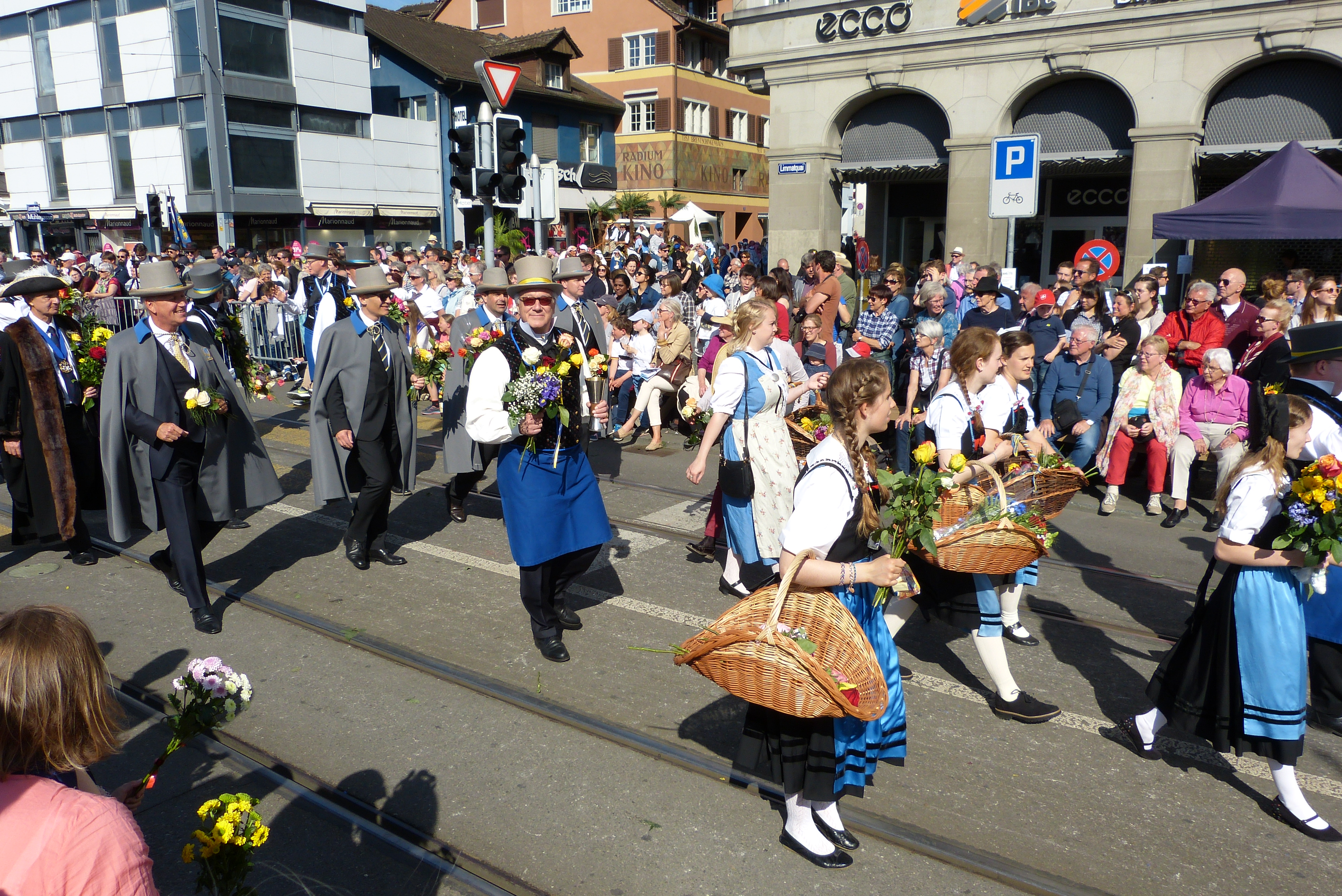 Kinder und Enkelkinder von Zünftern nehmen von Kindsbeinen an am Umzug teil. Sie werden von Zünftersfrauen und Zünftern begleitet – und bei Bedarf getragen.